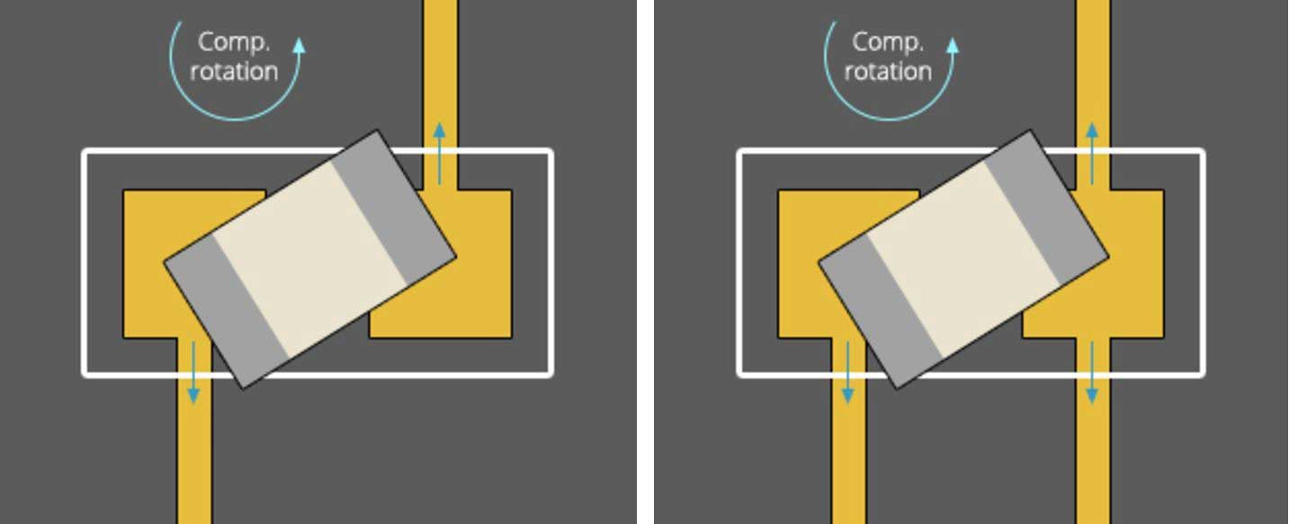 良好組件方向()和糟糕芯片元件方向()